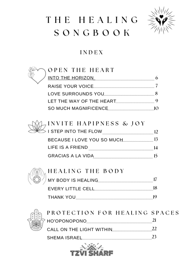 Medicine songs with lyrics, chords and links to hear the songs (Audio) by Tzvi Sharf, available for you to learn and practice the songs. Divided by cathegories: